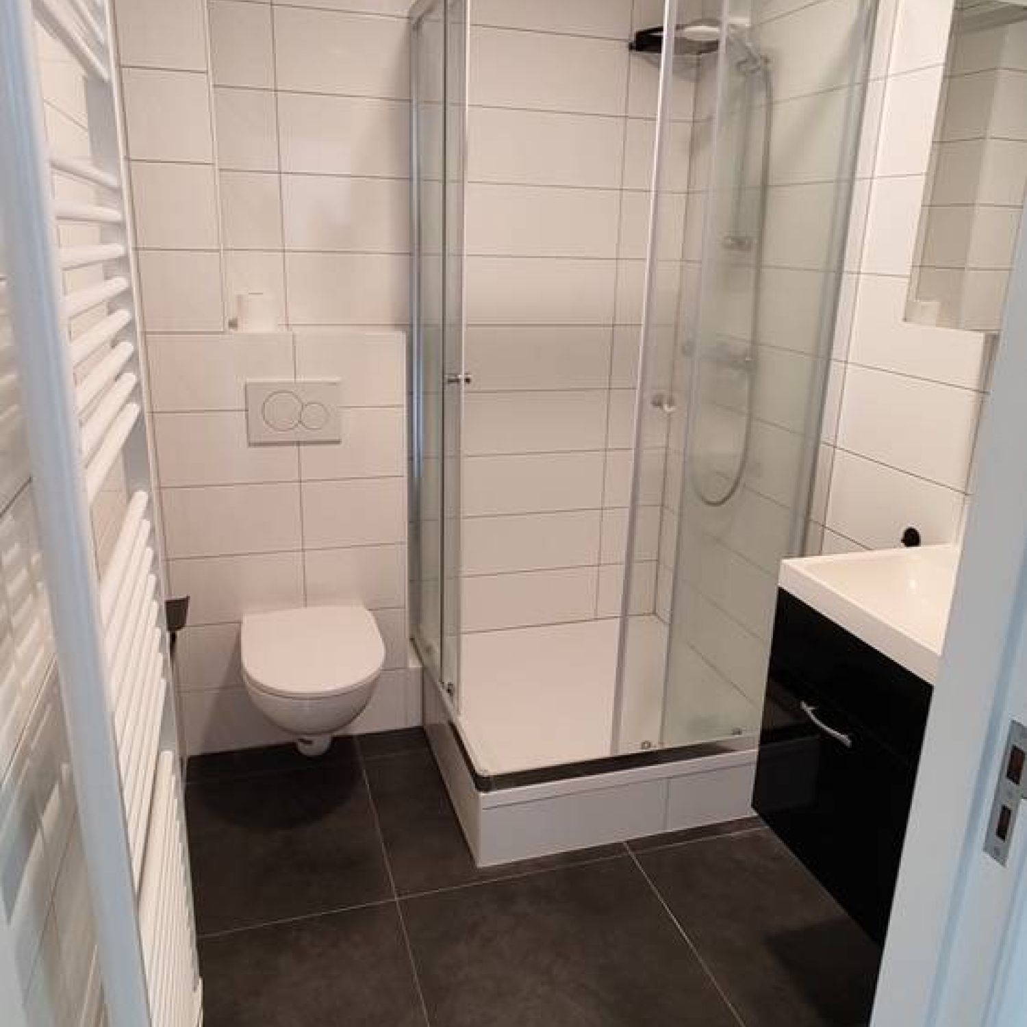 The apartments are very luxuriously equipped with video spy, modern bathroom with toilet, vanity unit and shower. The hot water supply is arranged individually for each apartment. The living room with open kitchen has a modern PVC floor that can take a beating. The apartments are all equipped with lighting through dimmable spotlights, climate control and individually controlled air conditioners. Furthermore, the apartments are equipped with roller blinds, whether or not in combination with curtains.