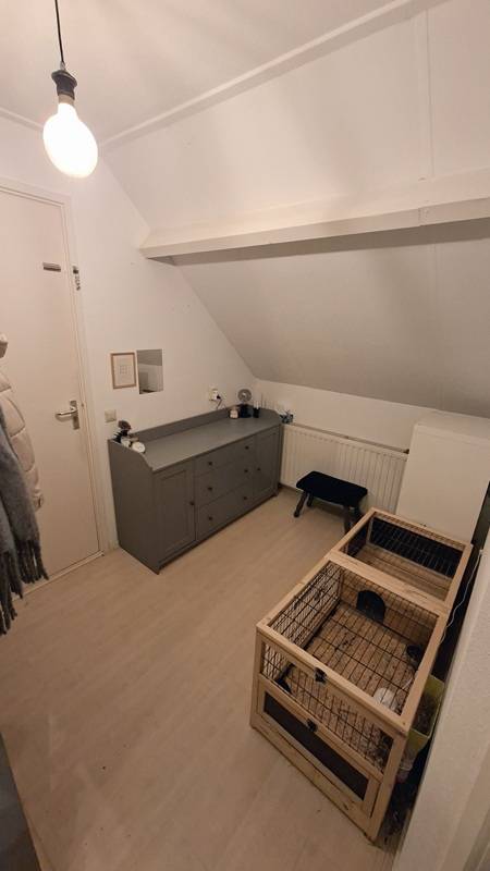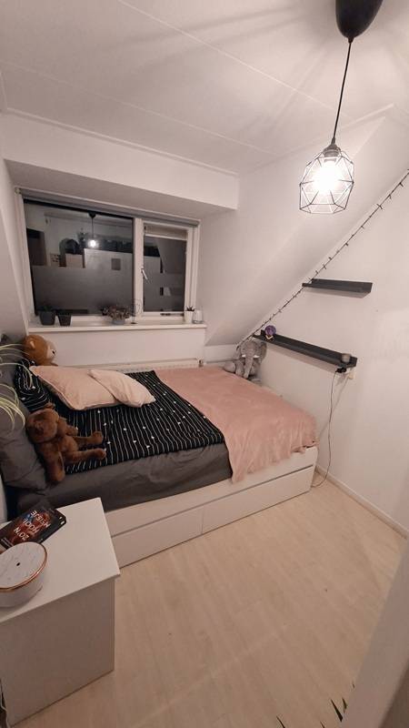 De slaapkamer is gelegen aan de achterzijde en over de volle breedte voorzien van een dakkapel. Er is ruimte voor een tweepersoonsbed en een kledingkast.