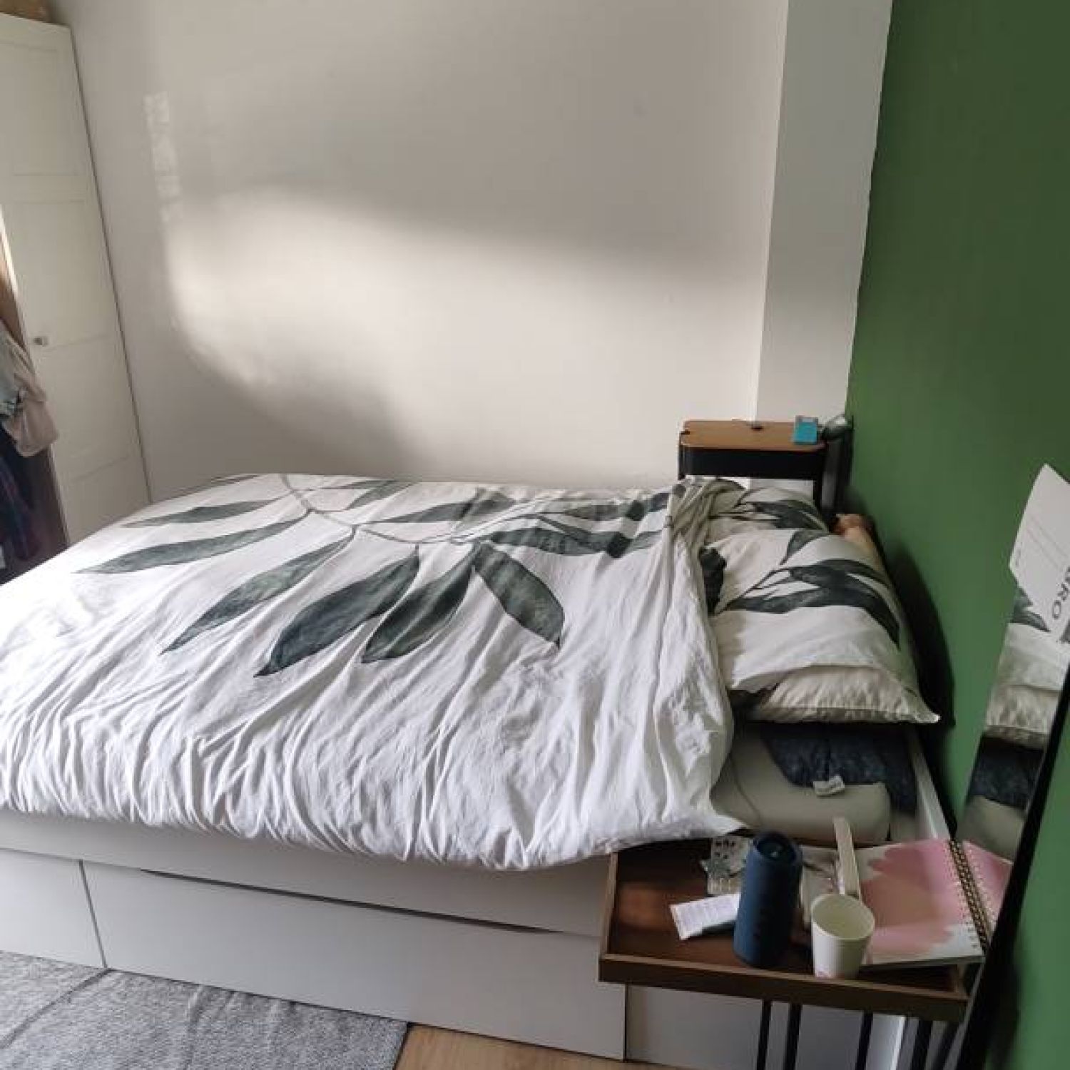 De slaapkamer is ruim te noemen en heeft een groot raam.
